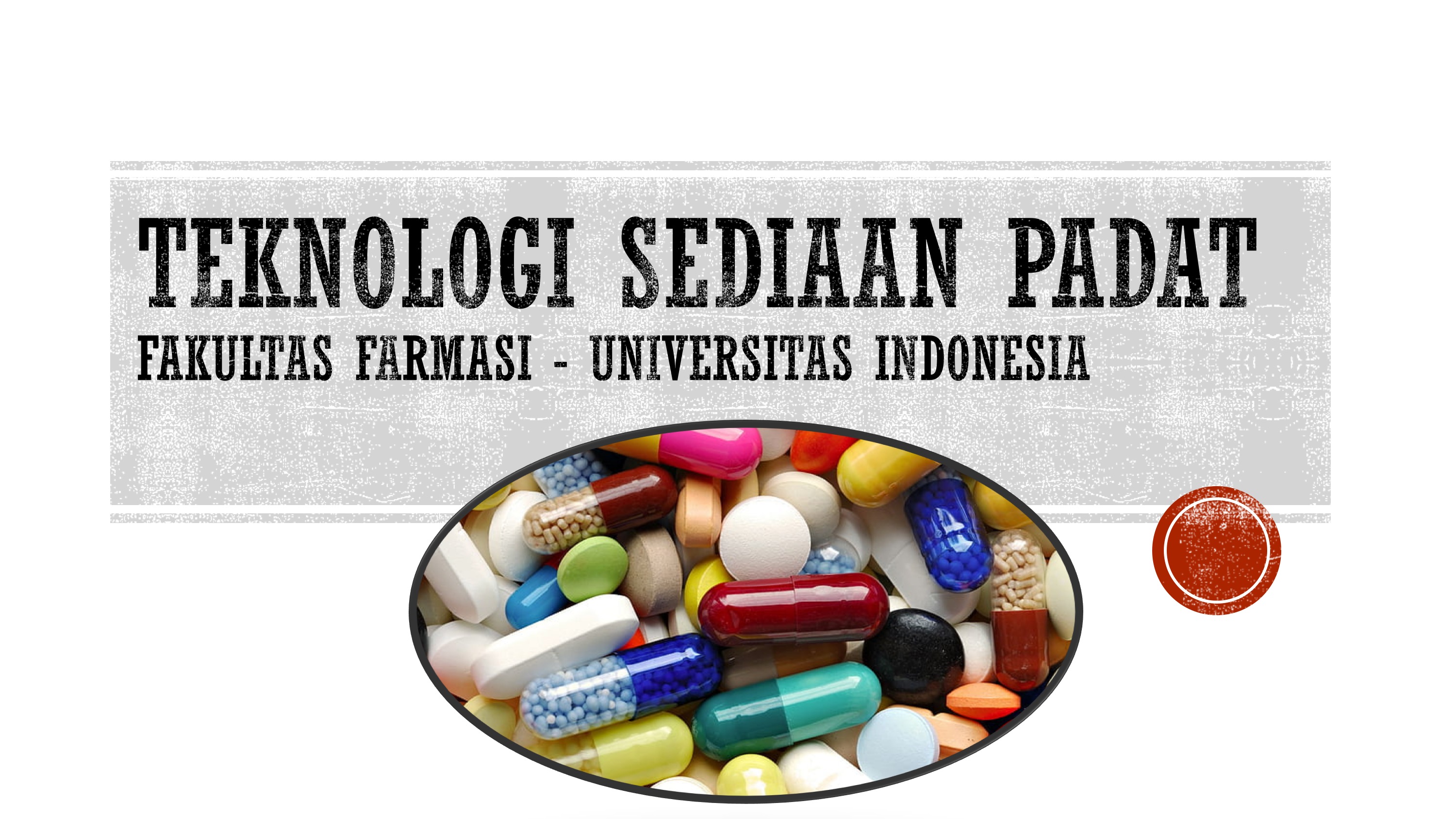 Selamat datang di mata kuliah Teknologi Sediaan Padat. Mata kuliah ini bertujuan agar peserta pembelajaran mampu menjelaskan konsep dasar sediaan padat sehingga mampu merancang formula sediaan padat, mengidentifikasi permasalahan-permasalahan pada tahap praformulasi dan formulasi, menganalisis permasalahan formulasi dan proses pembuatan sediaan. Selain itu, mahasiswa diharapkan pula mampu menetapkan eksipien dan sistem penghantaran obat untuk sediaan padat; dan mampu menjamin mutu sediaan padat yang dihasilkan.