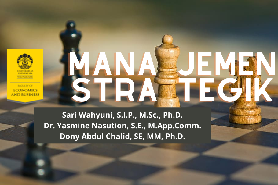 Dosen Koordinator : Dr. Yasmine Nasution, S.E., M.App.Comm. [yasmine73@ui.ac.id] Melalui mata kuliah/modul ini, Anda akan mempelajari penguasaan yang baik atas prinsip-prinsip dasar manajemen stratejik sangat dibutuhkan oleh pimpinan perusahaan dalam meningkatkan kinerja perusahaan dan memenangkan persaingan. Mata kuliah ini akan membahas berbagai perspektif dan metode analisa yang digunakan dalam pengambilan keputusan dan implementasi strategi, berawal dari penentuan tujuan perusahaan, identifikasi pengaruh lingkungan eksternal, pengembangan sumber daya internal, hingga menentukan strategi yang sesuai. Pembahasan manajemen stratejik merupakan integrasi dari berbagai fungsi manajemen (pemasaran, keuangan, operasi, teknologi, sumber daya manusia, dll) yang bertujuan agar perusahaan mendapat keunggulan kompetitif yang berkesinambungan dan menjaga keseimbangan antar berbagai kepentingan yang dihadapi perusahaan. Jumlah SKS dari mata kuliah ini adalah 3 SKS dan modul ini ditujukan untuk jenjang Strata 2 (S2). Dengan estimasi waktu pembelajaran MOOCs ini selama 35 jam (150 menit dari 14 pertemuan). MOOCs ini akan dijalankan dengan moda Instructor-Led serta tidak akan berbayar (gratis). Setelah mengikuti mata kuliah/modul Anda akan mampu berpikir strategis menggunakan berbagai teori manajemen stratejik dan praktek terbaik dari berbagai perusahaan sehingga mampu mengidentifikasi, menganalisa dan memberikan usulan strategi bagi perusahaan untuk dapat mempertahankan keunggulan kompetitif. Anda juga akan mampu menjelaskan: 1. Konsep dasar manajemen stratejik dan keunggulan kompetitif. 2. Pentingnya bagi perusahaan memiliki arah dan tujuan yang jelas. 3. Faktor-faktor eksternal perusahaan dan menganalisa pengaruhnya bagi perusahaan. 4. Faktor sumber daya dan kapabilitas perusahaan dan menganalisa pengaruhnya bagi perusahaan. 5. Alternatif strategi bisnis yang dapat diambil perusahaan sesuai tujuan, analisa faktor eksternal dan faktor internal. 6. Langkah strategis perusahaan untuk menguatkan posisi kompetitif perusahaan. 7. Konsep model bisnis dan pengaruhnya terhadap keunggulan kompetitif perusahaan. 8. Alternatif strategi yang dapat diambil perusahaan dalam menghadapi persaingan di tingkat internasional. 9. Alternatif strategi korporasi yang dapat diambil perusahaan. 10. Faktor-faktor penting yang mempengaruhi keberlangsungan perusahaan seperti etika bisnis dan governance. 11. Faktor-faktor yang mempengaruhi implementasi strategi. 12. Peran budaya dan kepemimpinan dalam keberhasilan perusahaan menghadapi persaingan. 13. Strategi perusahaan dalam menghadapi isu terkini.