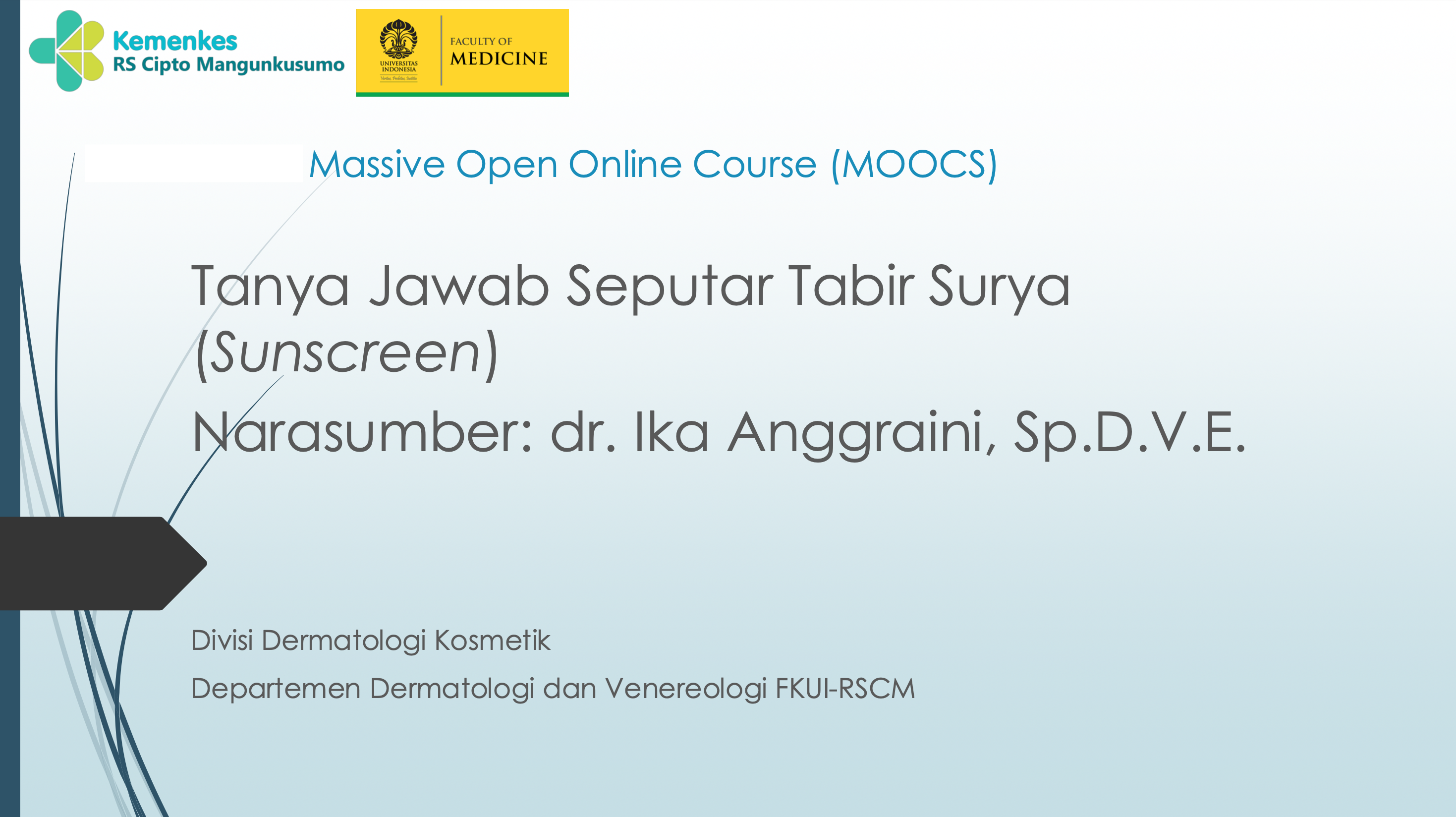 Selamat datang di mata kuliah Tanya Jawab Seputar Tabir Surya (Sunscreen) dan selamat bergabung dengan pembelajar lainnya. Mata kuliah ini akan mempelajari tentang pengertian tabir surya. Setelah mempelajari MK ini, diharapkan Anda mampu untuk memahami lebih dalam mengenai tabir surya, cara penggunaannya, hingga mitos-fakta mengenai tabir surya.