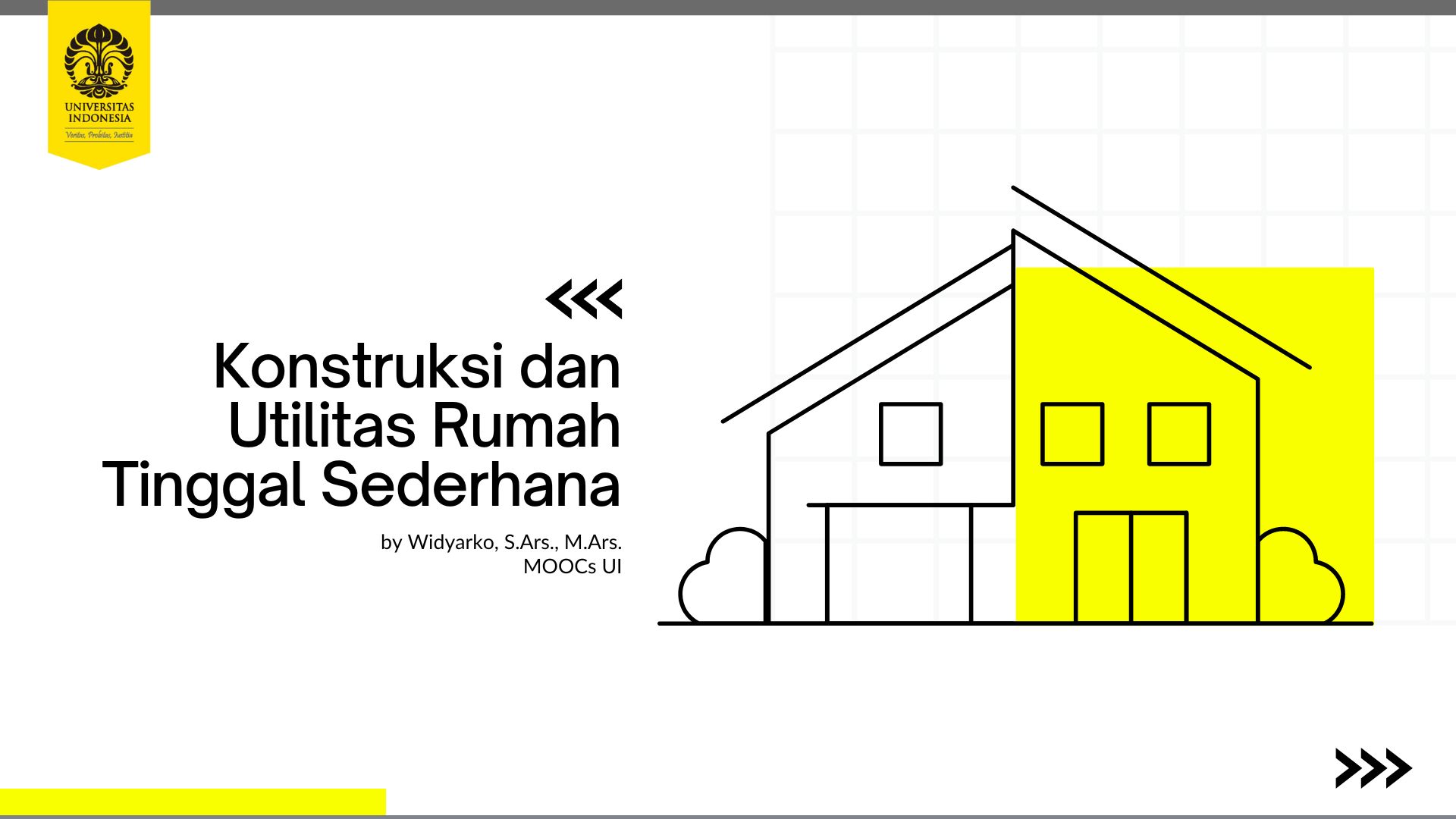 Selamat datang di kelas KONSTRUKSI DAN UTILITAS RUMAH TINGGAL SEDERHANA dan selamat bergabung dengan pembelajar lainnya. Kelas ini berisi materi pembelajaran terkait pengetahuan merancang dan membangun rumah tinggal sederhana khususnya pada aspek konstruksi dan utilitas sesuai dengan yang diatur dalam Peraturan Pemerintah No 16 Tahun 2021 tentang Peraturan Pelaksanaan Undang-Undang nomor 28 tahun 2002 tentang Bangunan Gedung. Setelah mempelajari kelas ini, pembelajar diharapkan mampu menjelaskan pengetahuan terkait perancangan konstruksi dan utilitas pada bangunan rumah sederhana bertingkat rendah dengan tepat.